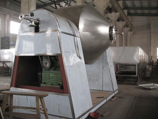 在动力驱动下,罐体做缓慢旋转,罐内物料不断的混合,从而达到强化干燥的目的。