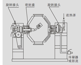 在密闭的夹层中通入热能源(如热水、低压、蒸汽或导热油),热量经内壳传给被干燥物料。