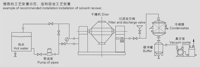 物料处于真空状态,蒸汽压力下下降使物料表面的水分(溶剂)达到饱和状态而蒸发了,并由真空泵及时排出回收。物料内部的水分(溶剂)不断的向表面渗透、蒸发、排出,三个过程不断进行,物料在很短时间内达到干燥目的。